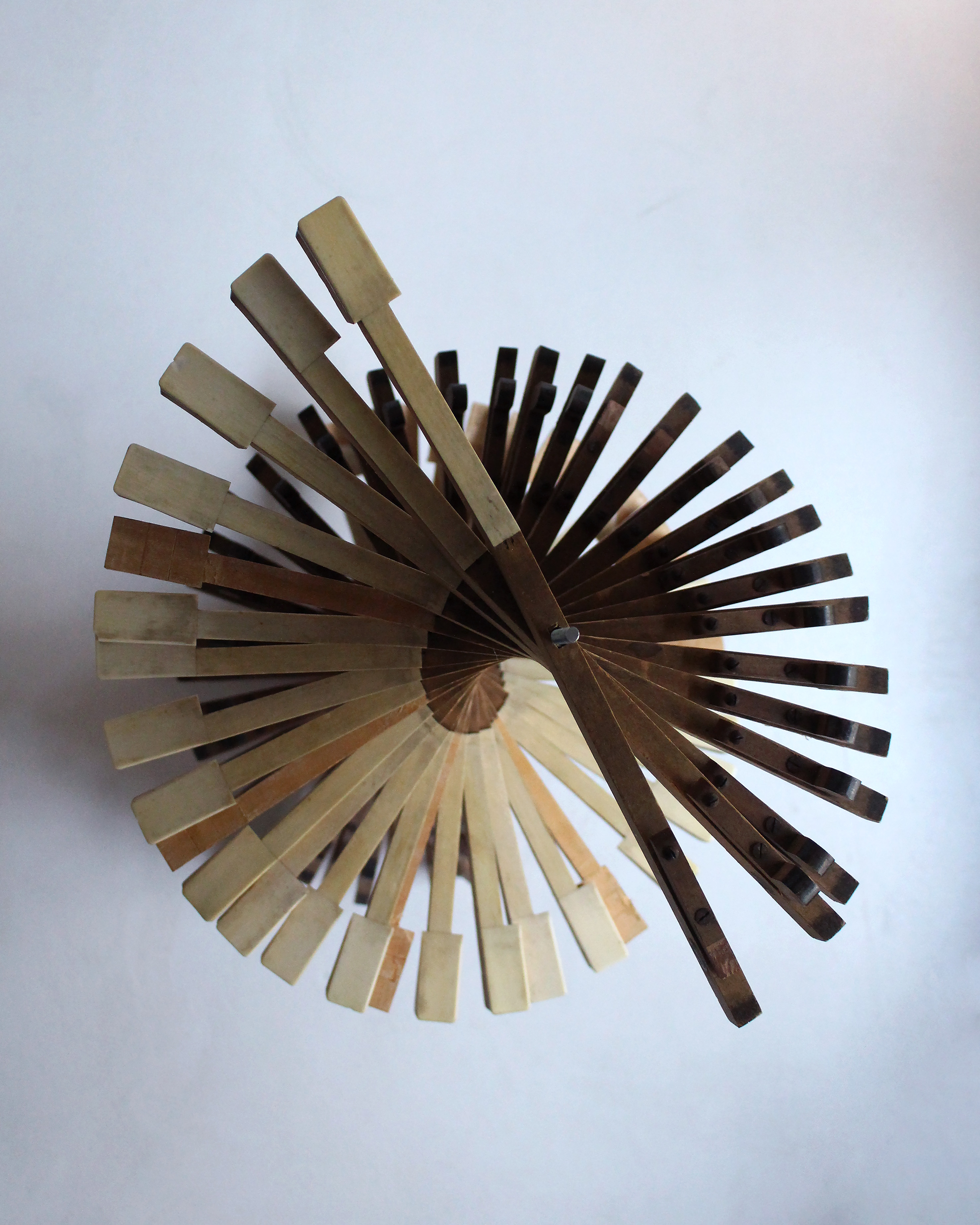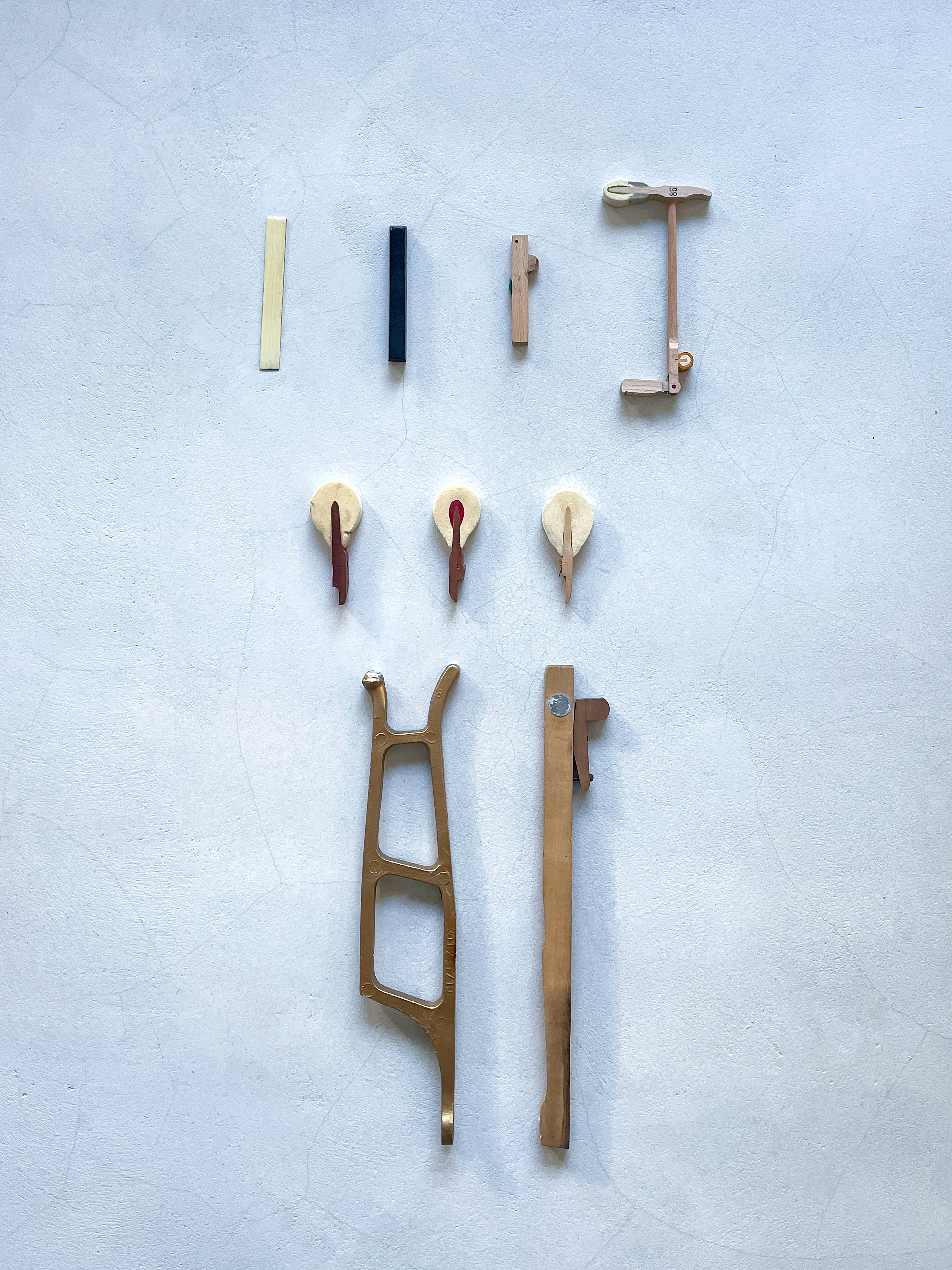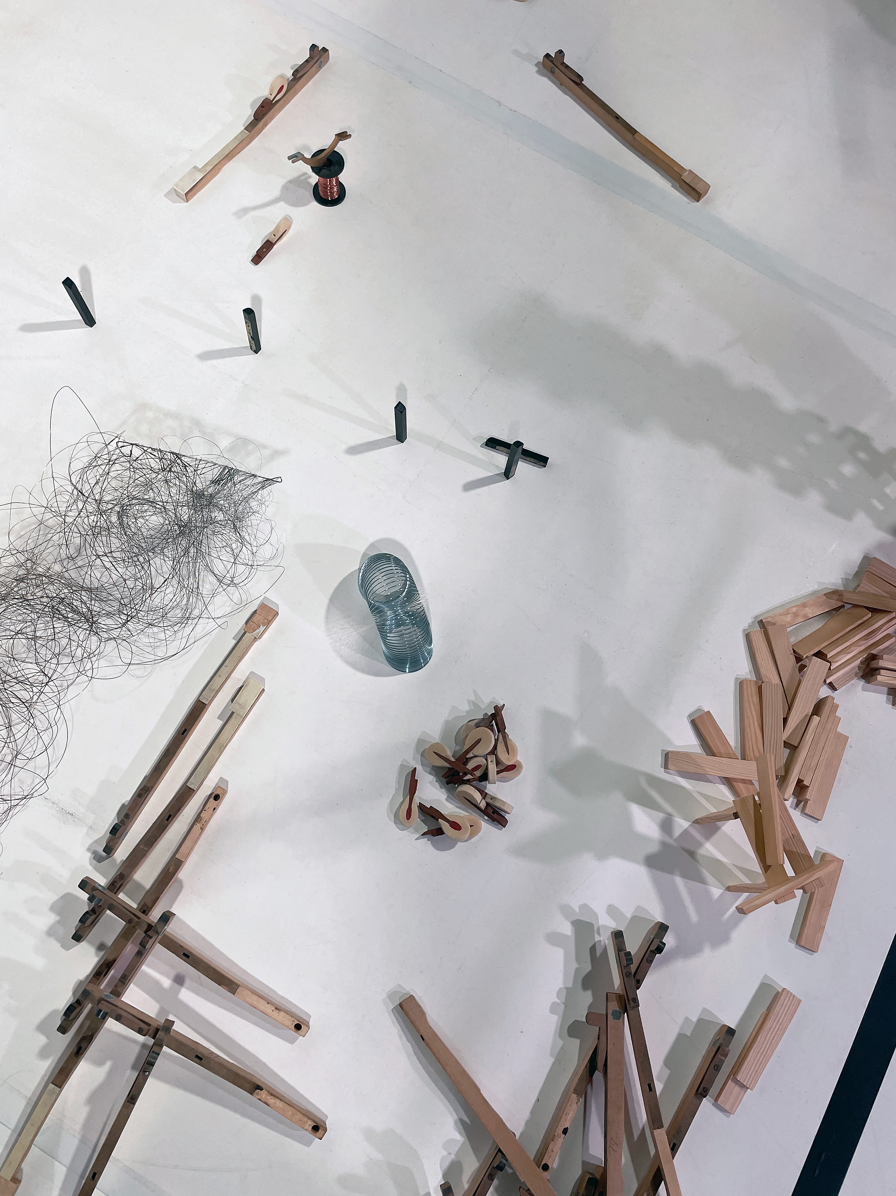 A partir de pièces détachées de pianos, un vocabulaire s’établit, des assemblages prennent forme et leur projection par jeux d’ombres révèle une dimension supplémentaire.